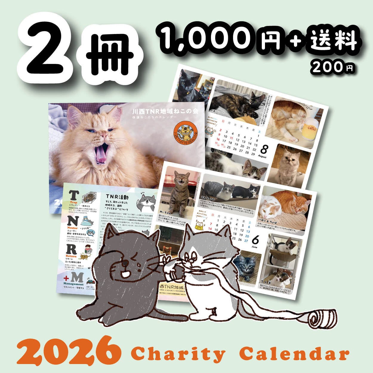 毎年好評の"チャリティカレンダー"が今年も登場!「ねこ助け2026」の売上は印刷代を除く全ての収益を保護に関わるねこさんたちの医療費など活動費に使わせていただきます。保護ねこさんたちへのあたたかいご支援をよろしくお願いいたします。